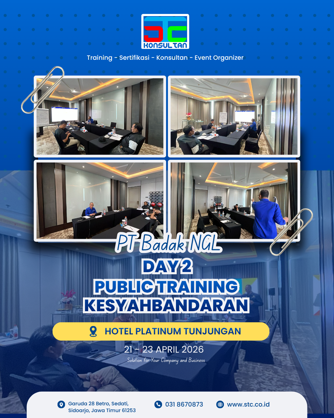Dunia maritim saat ini menuntut standar keamanan dan legalitas tanpa kompromi. Oleh karena itu, PT Badak NGL menyadari pentingnya efisiensi prosedur pelabuhan secara menyeluruh. Sebagai langkah nyata, mereka berkolaborasi dengan STC Konsultan menggelar Public Training Kesyahbandaran di Surabaya. Kegiatan ini berlangsung di Hotel Platinum Tunjungan dengan suasana yang sangat kondusif. Akhirnya, pada 22 April 2026 (Day 2), pelatihan memasuki fase yang paling krusial bagi para peserta. Selain itu, agenda ini menjadi langkah strategis untuk memperkuat operasional perusahaan di sektor energi.