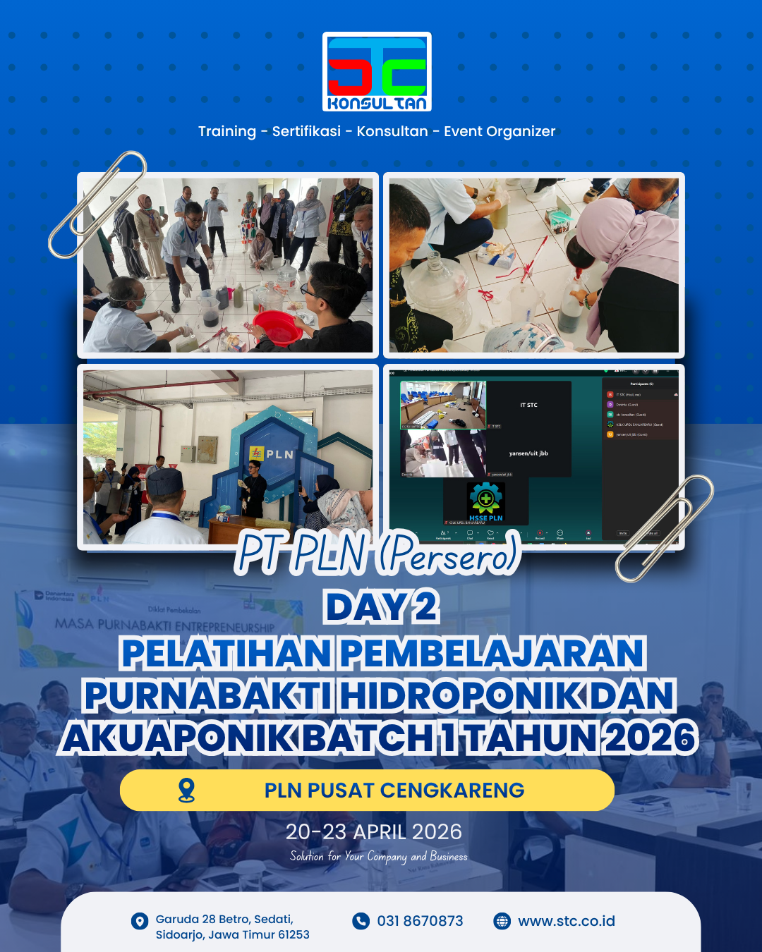 Tepat pada momen ini, suasana di PT PLN (Persero) Pusat Cengkareng tampak sangat dinamis dan penuh semangat yang luar biasa. Kami secara resmi melanjutkan agenda Day 2 Pelatihan Purnabakti Hidroponik dan Akuaponik Batch 1 Tahun 2026 yang berlangsung sejak 20 hingga 23 April.
